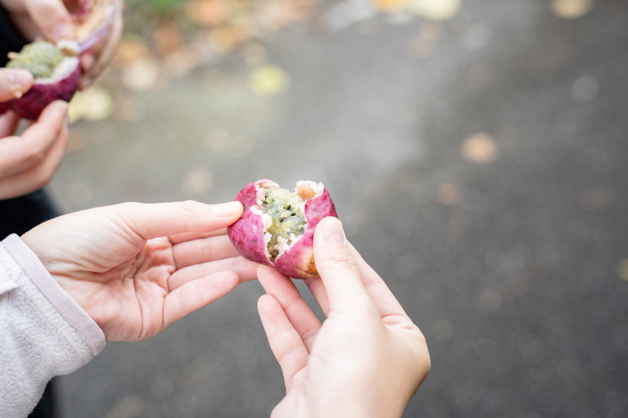 割ってみると、中にはとろりとした果肉。一口含めば、素朴で優しい甘さが口いっぱいに広がる。