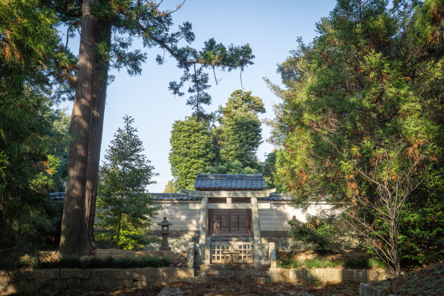 そう語る小澤さんの背中を追って、木漏れ日の落ちる参道を歩く。最初に案内された場所は、後鳥羽天皇御火葬塚。この島で生涯を閉じた後鳥羽上皇の遺骨の大部分が納められているという聖域だ。俗世とは切り離されたような、ここだけ時間が止まったかのような静けさを感じる。