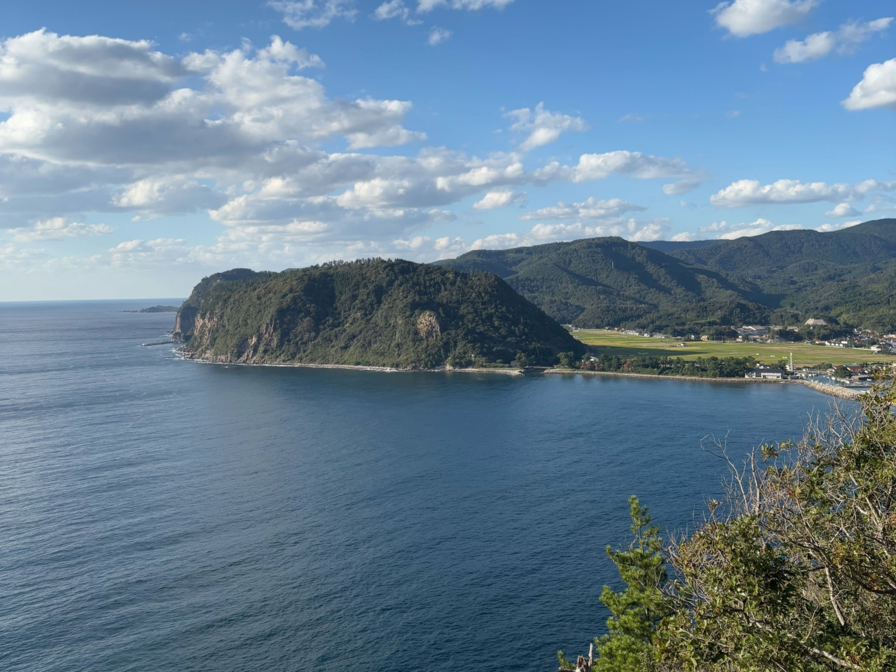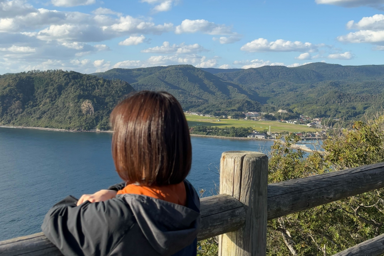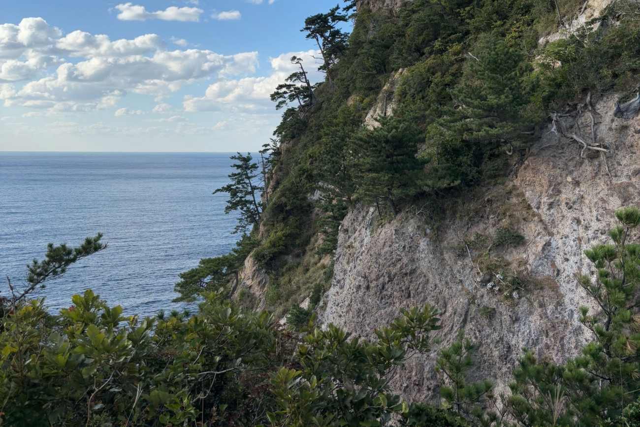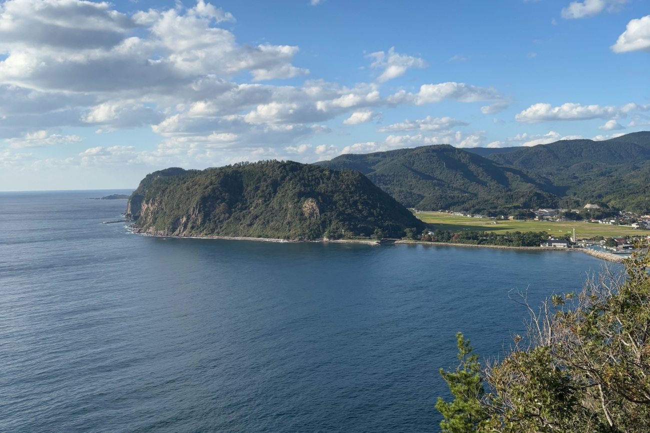 扇平展望台や洲崎展望台からの景色は、アルカリ流紋岩の岩肌と日本海が一望でき